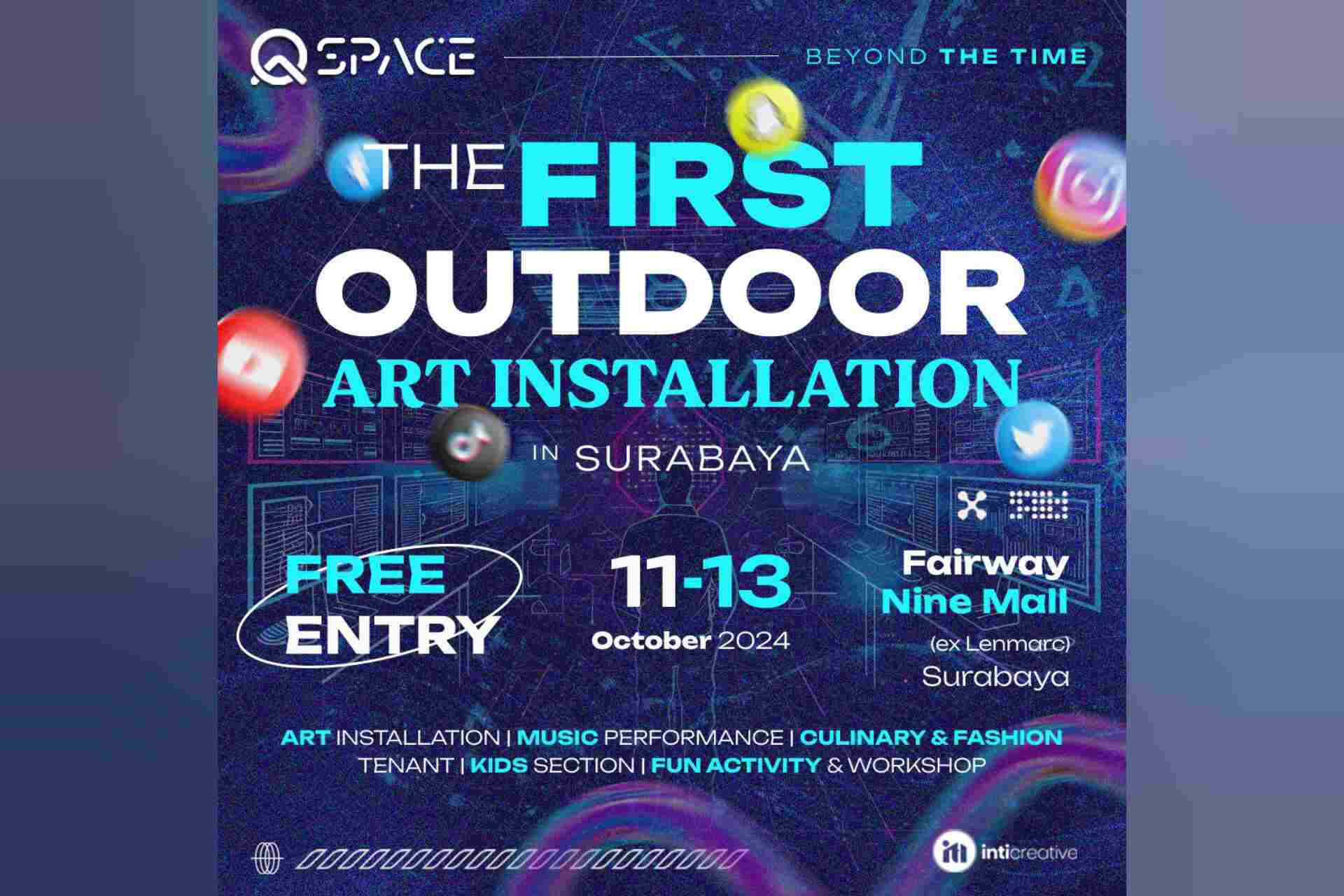 Saksikan Outdoor Art Installation yang dimeriahkan oleh music performance, culinary and fashion expo, kids section, fun activity dan workshop di QA Space: Beyond The Time 11 – 13 Oktober 2024 di Fairway Nine Mall, Surabaya. (Rls/wp). **